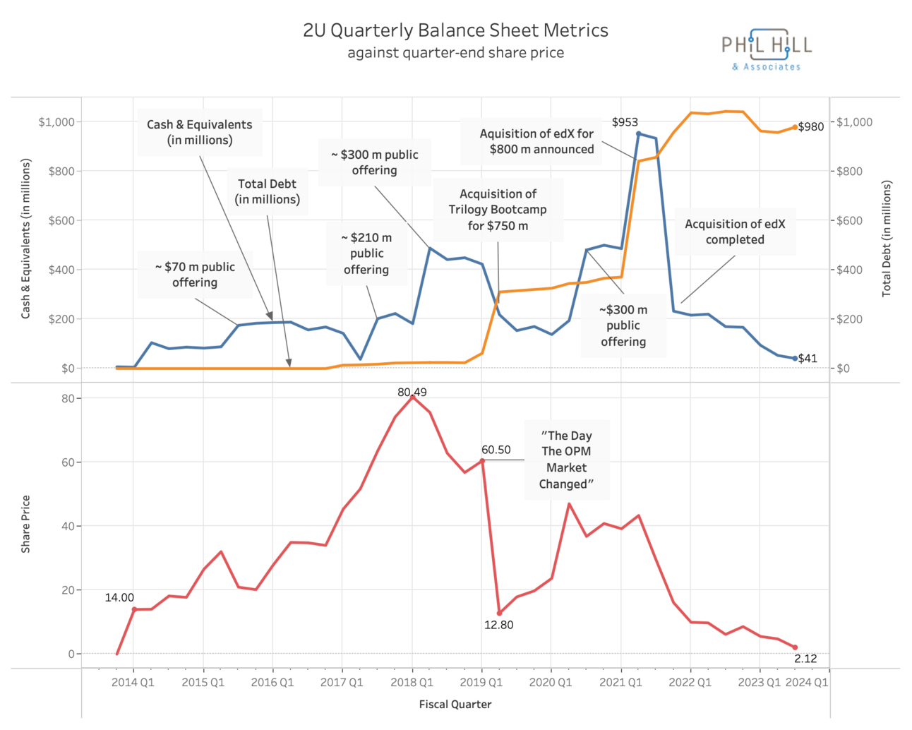 In a premium post last week after 2U / edX’s longtime CEO and co-founder Chip Paucek stepped down from his role and resigned from the board, I described that 2U was facing a financial crisis that led to the change, and that the ending of USC partnerships was a secondary issue at best. Further, I argued that the financial problem was not one of operations per se - keeping and gaining clients, profits and losses - but rather a crisis of the balance sheet - cash, debt, liabilities.