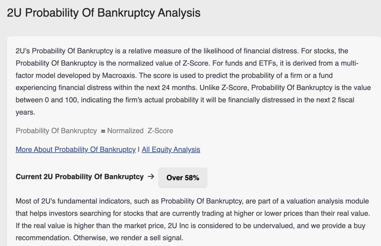 2U disclosed that it likely won’t have the liquidity to pay off its debt absent major, existential changes.