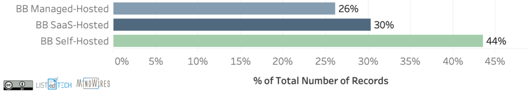 Justin Menard from LISTedTECH (our partners in LMS market analysis service for higher ed and K-12) shared today that we now have the ability to track Blackboard’s Learn LMS hosting models. Self-hosting, Managed Hosting and SaaS Hosting (software-as-a-service, aka cloud hosting) are now captured in the data – globally for higher ed and in the US and Canada for K-12. This is a great addition, and to my knowledge we are the only ones to have this data in this scope. Head over to Justin’s blog to read more on the data additions. Also note that we will be validating and updating this new data over time, so treat this as our initial views. 1