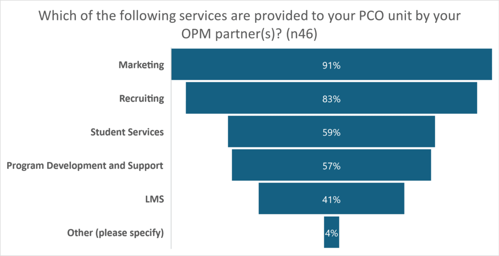 It’s no surprise that the discussions at both institutions center on marketing and recruitment. These are typically the areas where OPMs contribute most significantly to their partner institutions’ operations, as highlighted by a recent UPCEA snap poll.