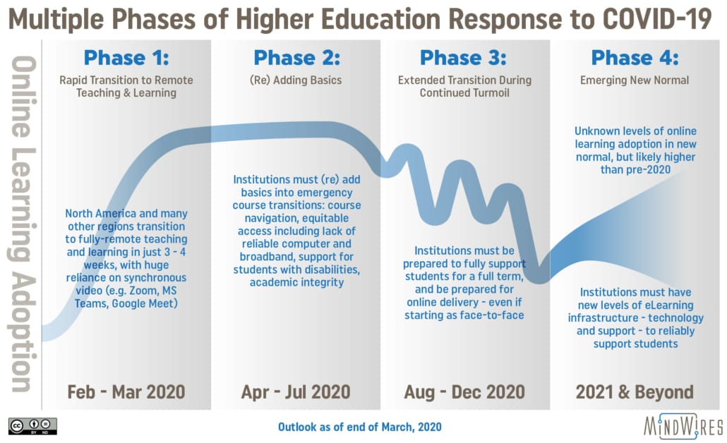 Today we’re still in an academic recovery mode – using precious fuel to point our online modules toward a safe landing. However, we do not have the time to wait to revise our planning for our course launch in the fall – Phase 3 of Phil Hill’s timeline of the Higher Ed Response to COVID-19. Our window to finish the planning for Phase 3 really ends in the second half of May.