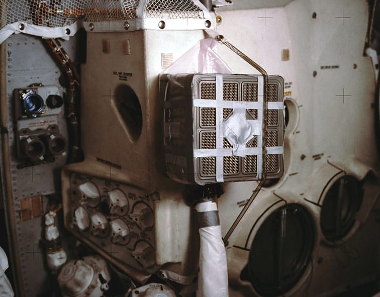 Today is the 50th anniversary of the Apollo 13 mission returning to earth safely after a potentially fatal explosion damaged the spacecraft. During the emergency the 3-person crew survived by shutting down the command module and scrambling into a 2-person lunar module. Needless to say, it wasn’t an ideal situation. An interview with astronaut Ken Mattingly provided behind the scenes details about how they created a carbon dioxide scrubber to make sure the astronauts survived with clean air until they returned to Earth. To make the scrubber the mission control team had to devise a solution with whatever the astronauts had on board – the final product used duct tape, tube socks and spacesuit parts. As The Next Web put it, “Ingenuity saved Apollo 13.”