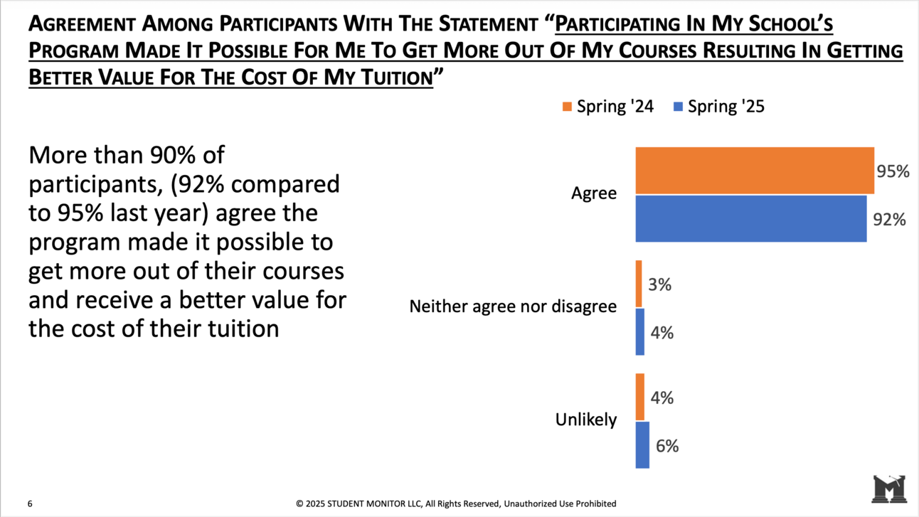 Students appear to find academic value from this first day concept, although there was a small year-over-year decline that should be monitored (pun intended).