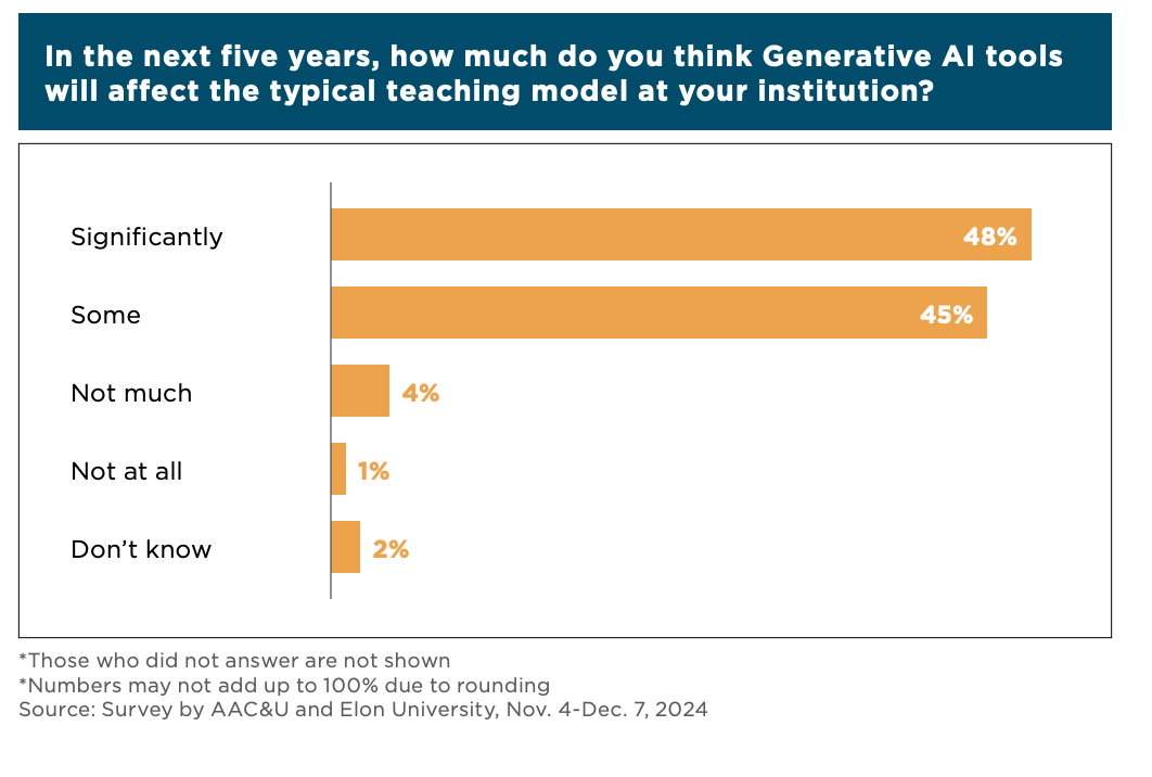 Most leaders believe AI will reshape the typical teaching model at their institutions. I may be overly optimistic, but I see this as a positive development.