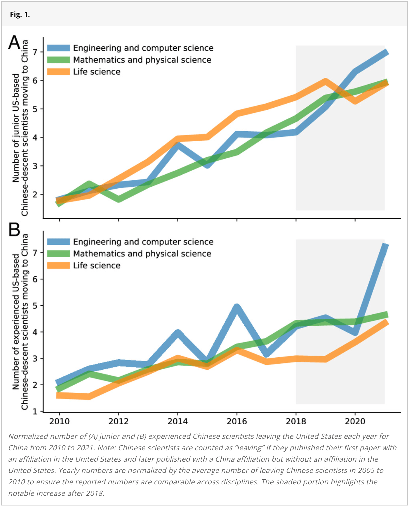 A research article charts the growing number of Chinese scientists leaving the United States for China. Chinese students make up a large share of those pursuing graduate degrees in the U.S. While most have traditionally intended to remain after completing their degrees, the authors show that an increasing number are now returning home.