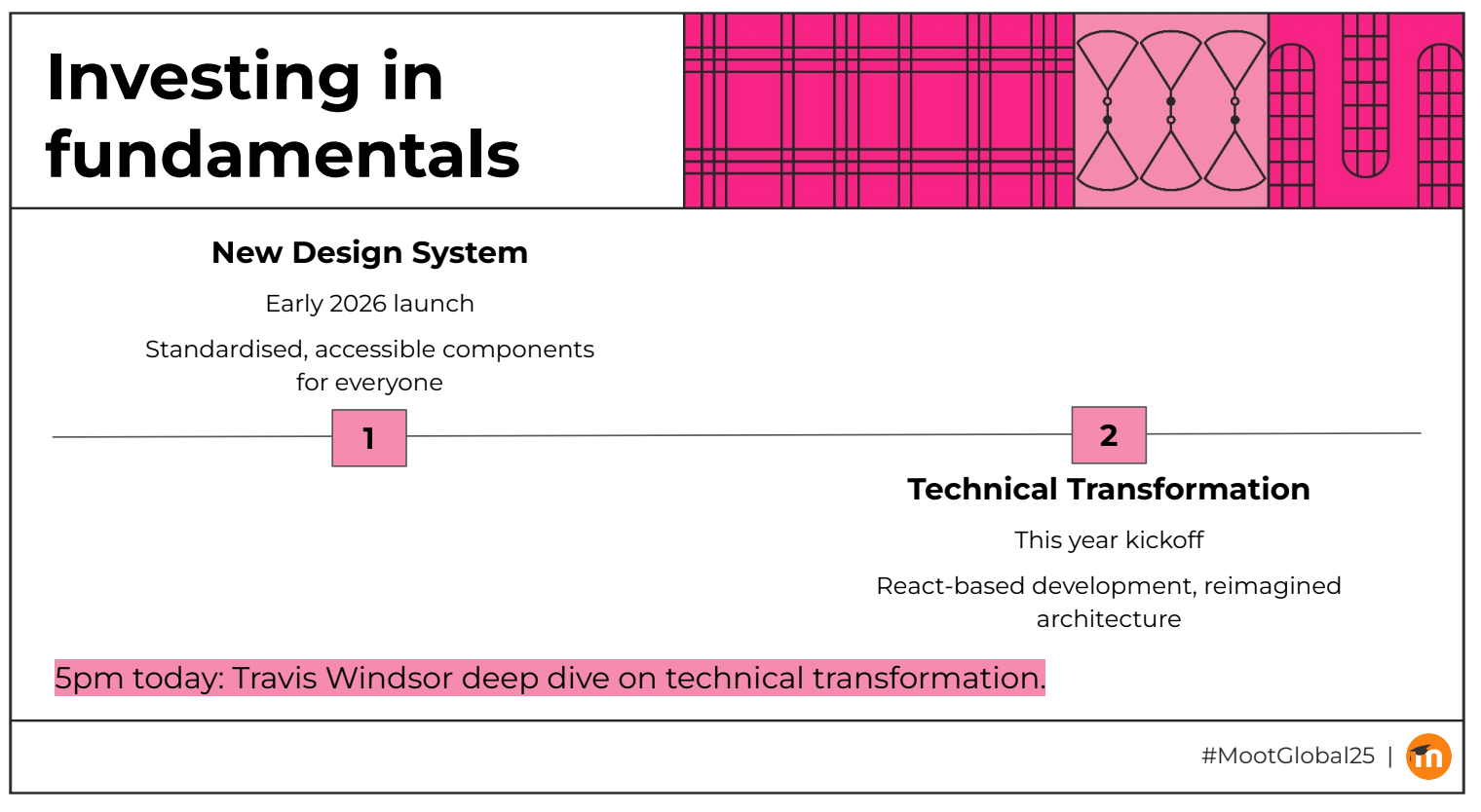 Windsor noted that in user interviews the word “monolith” came up repeatedly, reflecting broad frustration with the platform’s complexity. He also acknowledged dissatisfaction with Moodle’s UI, but emphasized that visual design is owned by product and design teams; his role is to provide the infrastructure that enables them to modernize the experience.