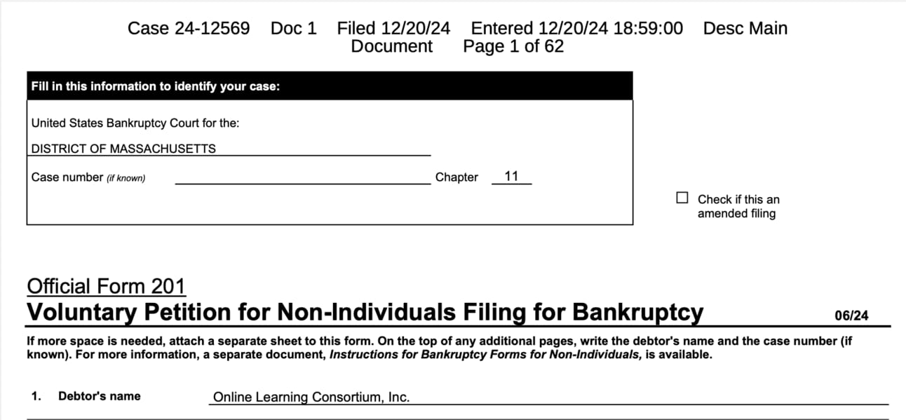 I checked the US Court System website through Pacer, and it turns out that OLC entered bankruptcy on December 20th. To me, this is significant news, even though OLC will continue to operate while it uses court protection to fix its finances. Such a historically influential higher education organization facing financial challenges.