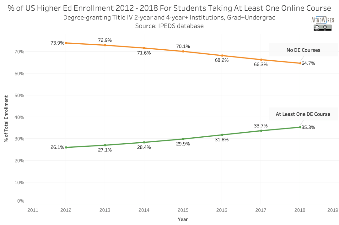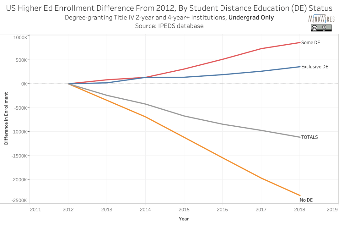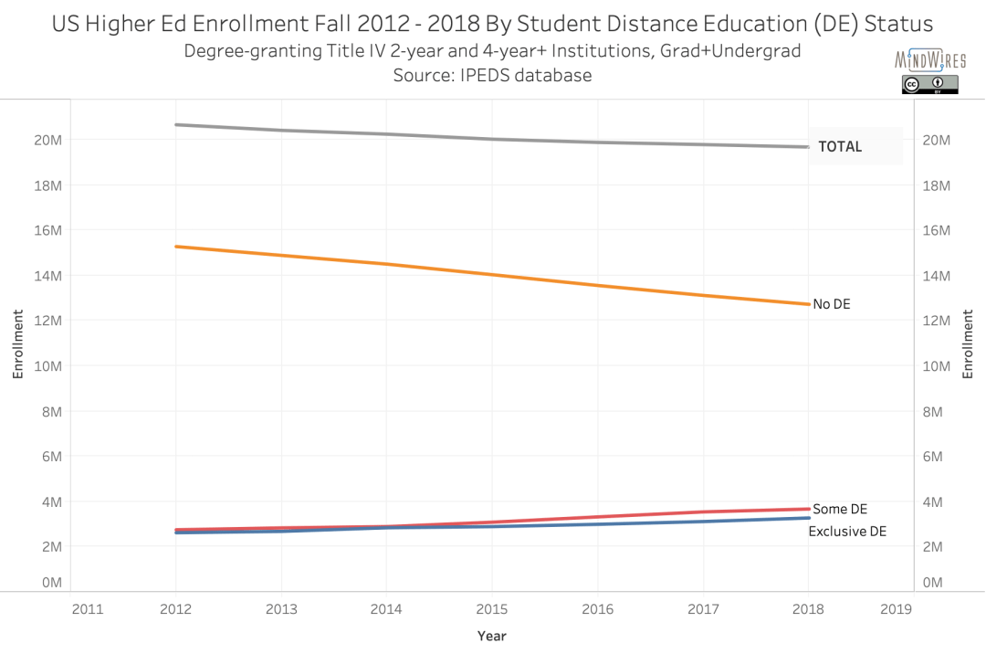 The post US Higher Education Enrollment Trends by Distance Education Type, 2012-2018 appeared first on Phil Hill & Associates.